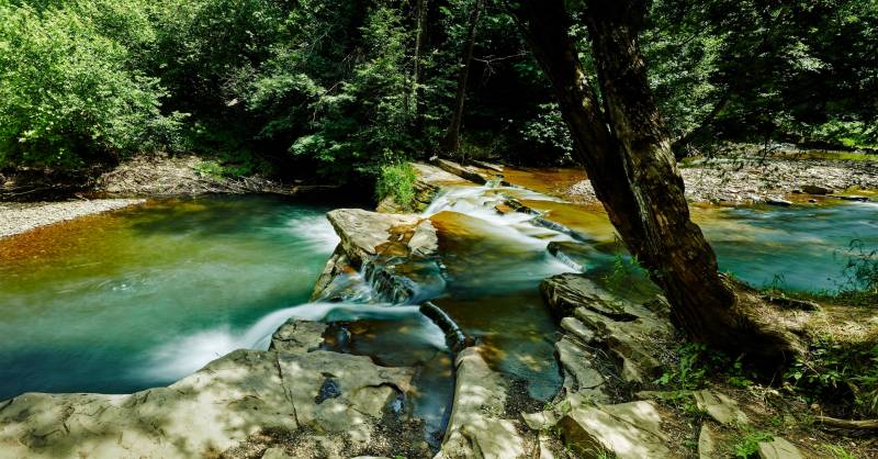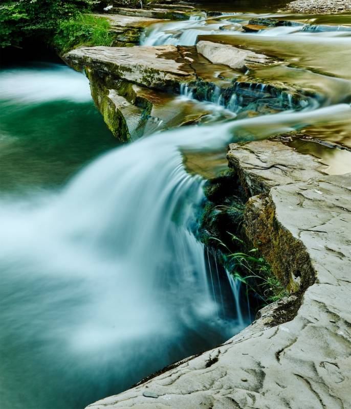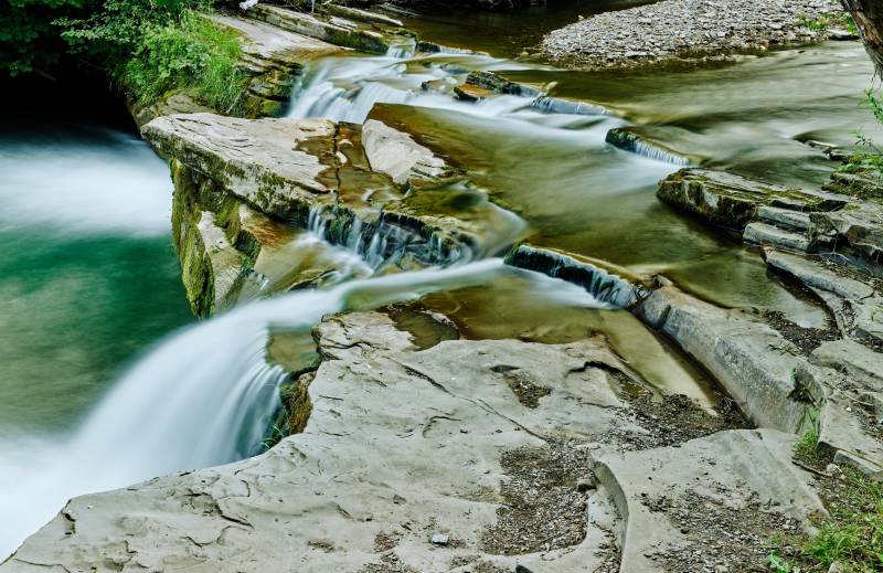 Nachádza sa v samom centre obce, poniže kostola. Vznikol na hrubej skalnej vrstve pieskovca, v koryte potoka Kacvínianka, je vysoký 7 m a široký 10 m. Viac ako 200 rokov (až do 80-tych rokov 20. storočia) fungovali pri vodopáde mlyn a píla, ktoré boli poháňané silou padajúcej vody. Koniec využitia vodnej sily priniesla elektrifikácia zariadení a povodeň v roku 1995, ktorá zobrala mlynské koleso.
