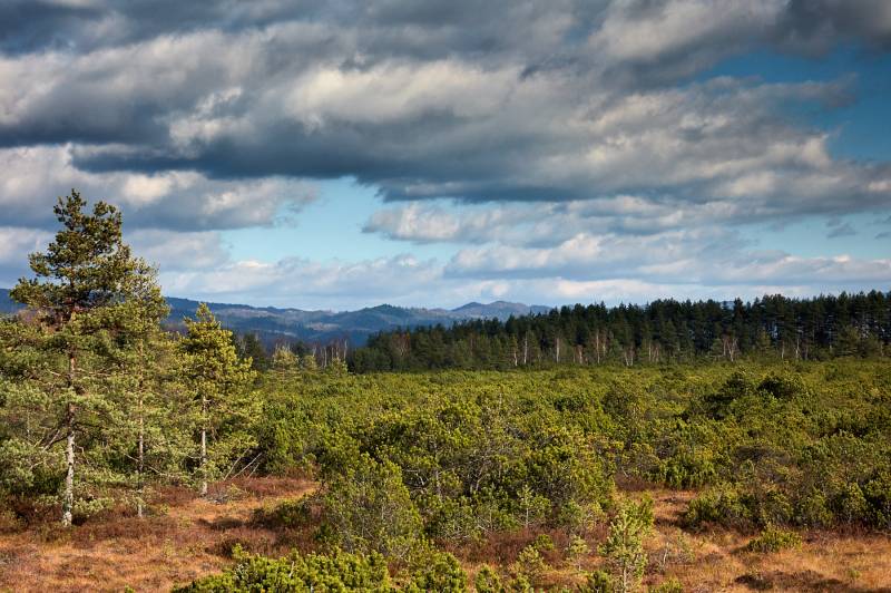 Les na Czerwonem (poľ. Bór na Czerwonem) v Novom Targu je rašelinisko – prírodná rezervácia, ktorá bola vytvorená už v roku 1925. Vtedy zahŕňala 2 ha tohto cenného prírodného územia. Aktuálne sa rezervácia rozprestiera na 115 ha, a celé územie tvorí prírodné refúgium (v rámci programu „Nátura 2000“), ktoré patrí do sústavy Oravsko-podhalanských rašelinísk. Centrálnu časť rezervácie tvorí vrchoviskové rašelinisko (s vekom približne 8000), okolo ktorého sa nachádzajú zamokrené a bahenné, lesom porastené územia. Názov rezervácie „Bór na Czerwonem“ pochádza od hojne sa tu vyskytujúcich rias, desmidií, ktoré na jeseň získavajú intenzívnu, červenú farbu. Typickou pre rašeliniská je borovica bahenná, ktorá je krížencom borovice a kosodreviny. Celkovo tu bolo narátaných 63 kvetových rastlín, 33 druhov machov a 15 pečeňoviek. „Bór na Czerwonem“ je miestom hniezdenia vzácnych druhov vtákov (o.i. bociana čierneho, tetrova). Do vnútra rezervácie vedie turisticko-cyklistický náučný chodník (posledných 200 m sa tiahne po drevenom mostíku, na konci ktorého sa nachádza vyhliadková terasa).